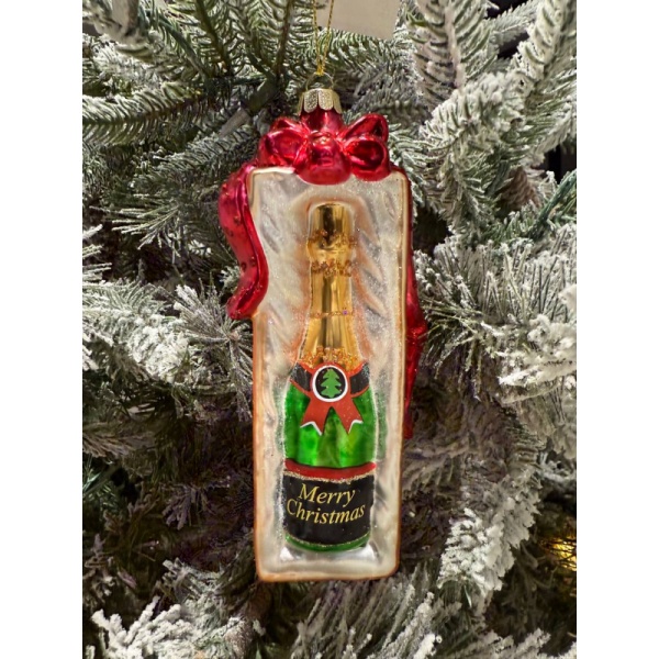 GOODWILL / Новогодняя елочная игрушка бутылка шампанского в коробке 16 см в ассортименте
